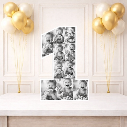 Personalised 1st Birthday Photo Collage Board- 10 Photos (Black and White)